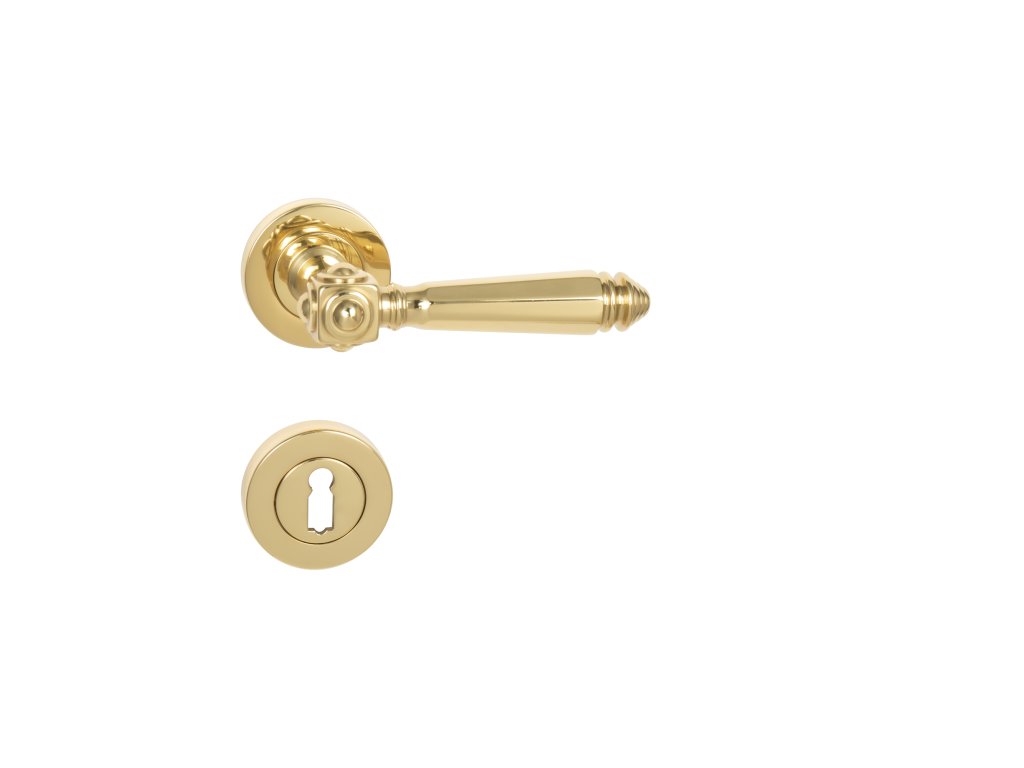 Rozetová kľučka na interiérové dvere s okrúhlou rozetou je vyrobená z materiálov vysokej kvality mosadz a je povrchovo upravená.