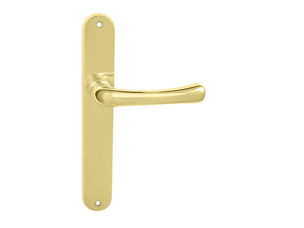Štítová kľučka na interiérové dvere s oválnym štítom je vyrobená z materiálov vysokej kvality – mosadz a je povrchovo upravená. Kľučka obsahuje vratný mechanizmus.