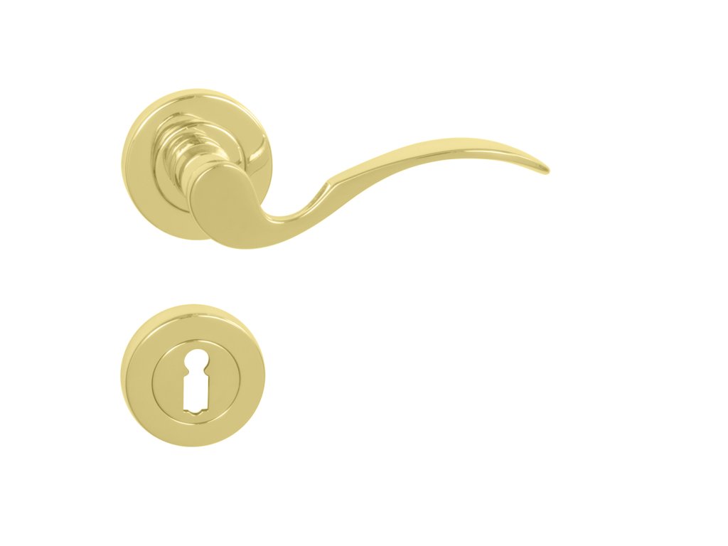 Rozetová kľučka na interiérové dvere s okrúhlou rozetou je vyrobená z materiálov vysokej kvality mosadz a je povrchovo upravená.
