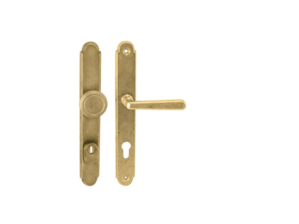 Štítová kľučka na vchodové a bezpečnostné dvere so spevneným rustikálnym štítom s prekrytím cylindrickej vložky je vyrobená z materiálov vysokej kvality – mosadz a je povrchovo upravená. Rustikálny štít má rozmery 38 mm x 280 mm a hrúbku 11 mm.