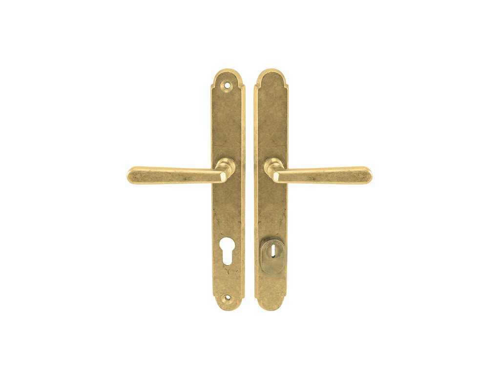 Štítová kľučka na vchodové a bezpečnostné dvere so spevneným rustikálnym štítom s prekrytím cylindrickej vložky je vyrobená z materiálov vysokej kvality – mosadz a je povrchovo upravená. Rustikálny štít má rozmery 38 mm x 280 mm a hrúbku 11 mm.