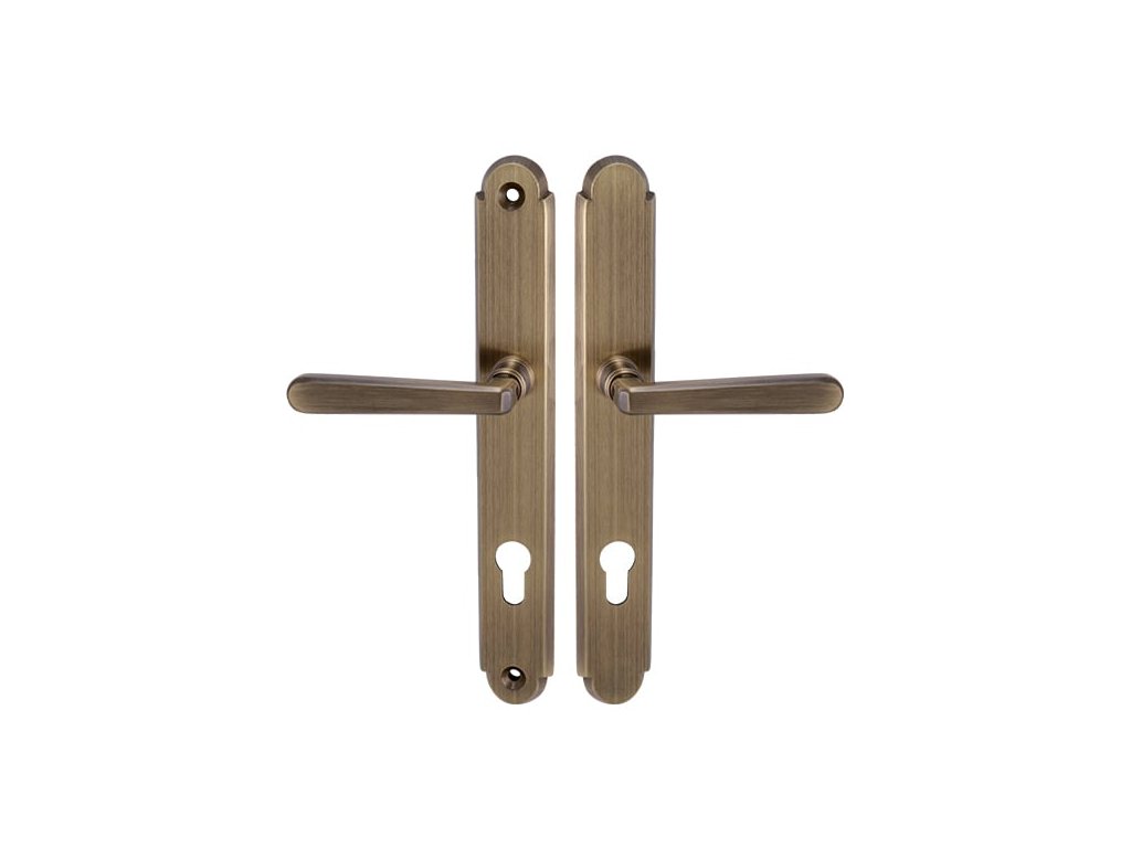 Štítová kľučka na vchodové a bezpečnostné dvere so spevneným rustikálnym štítom bez prekrytia cylindrickej vložky je vyrobená z materiálov vysokej kvality – mosadz a je povrchovo upravená. Rustikálny štít má rozmery 38 mm x 280 mm a hrúbku 11 mm.