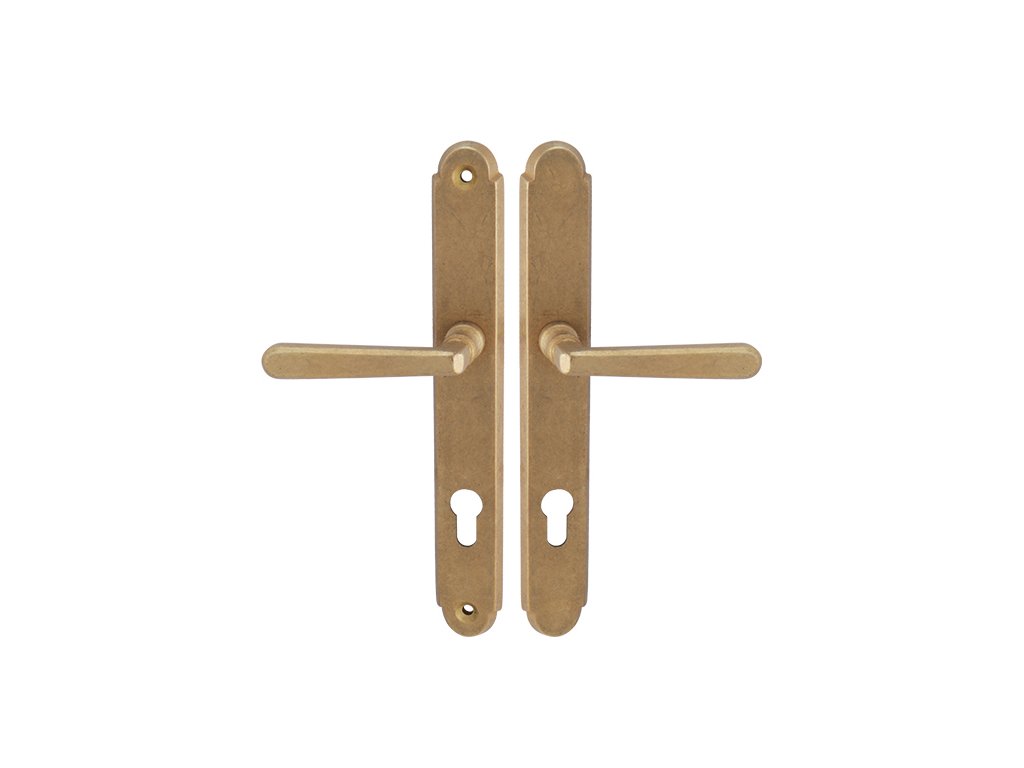 Štítová kľučka na vchodové a bezpečnostné dvere so spevneným rustikálnym štítom bez prekrytia cylindrickej vložky je vyrobená z materiálov vysokej kvality – mosadz a je povrchovo upravená. Rustikálny štít má rozmery 38 mm x 280 mm a hrúbku 11 mm.