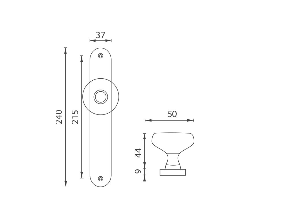 Dverová pevná priama guľa na oválnom štíte je vyrobená z materiálov vysokej kvality - mosadz a je povrchovo upravená. Guľa má priemer 50 mm a oválny štít má rozmery 37 mm x 240 mm. Je to len na Vašom rozhodnutí, aký typ otvoru si vyberiete z našej širokej ponuky. V prípade, že sa neviete rozhodnúť, radi Vám poradíme a pomôžeme s výberom.