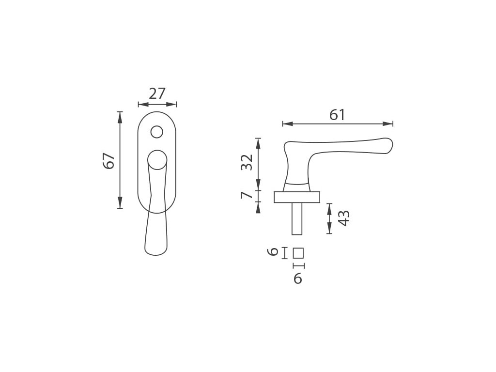 Pololiva na drevené okno s oválnou rozetou je vyrobená z materiálov vysokej kvality - mosadz a je povrchovo upravená. Rozeta má rozmery 27 mm x 67 mm a hrúbku 7 mm.