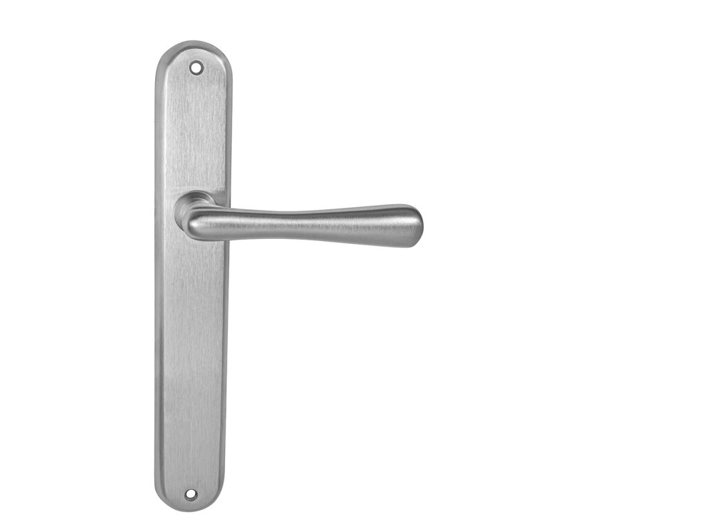 Štítová kľučka na interiérové dvere s oválnym štítom je vyrobená z materiálov vysokej kvality - mosadz a je povrchovo upravená. Oválny štít má rozmery 37 mm x 240 mm a kľučka obsahuje vratný mechanizmus.