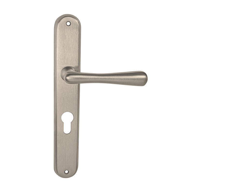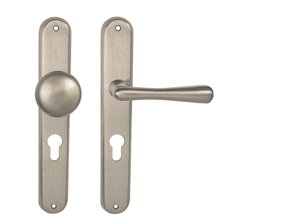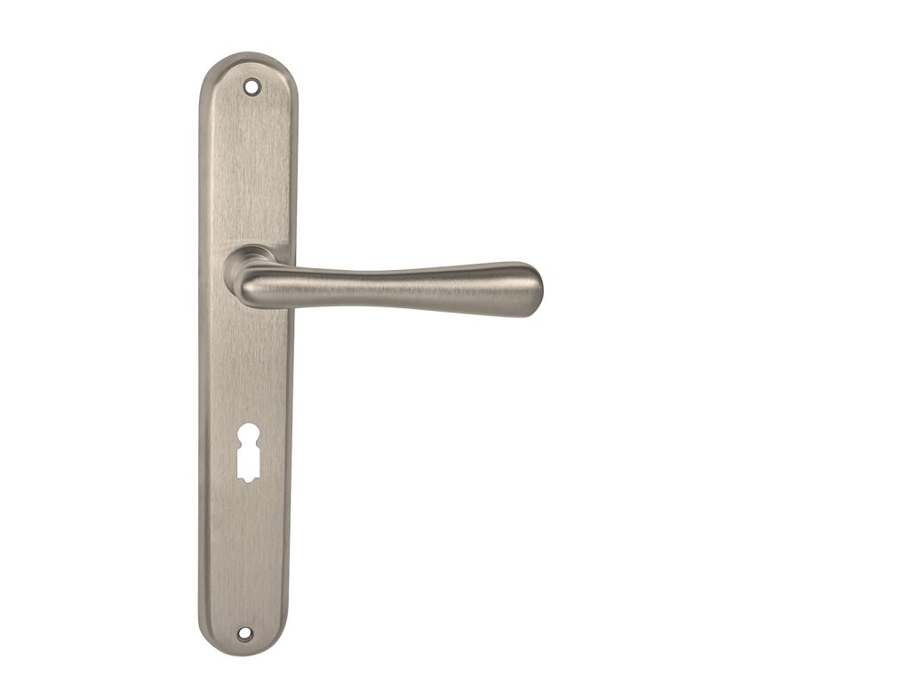 Štítová kľučka na interiérové dvere s oválnym štítom je vyrobená z materiálov vysokej kvality - mosadz a je povrchovo upravená. Oválny štít má rozmery 37 mm x 240 mm a kľučka obsahuje vratný mechanizmus.