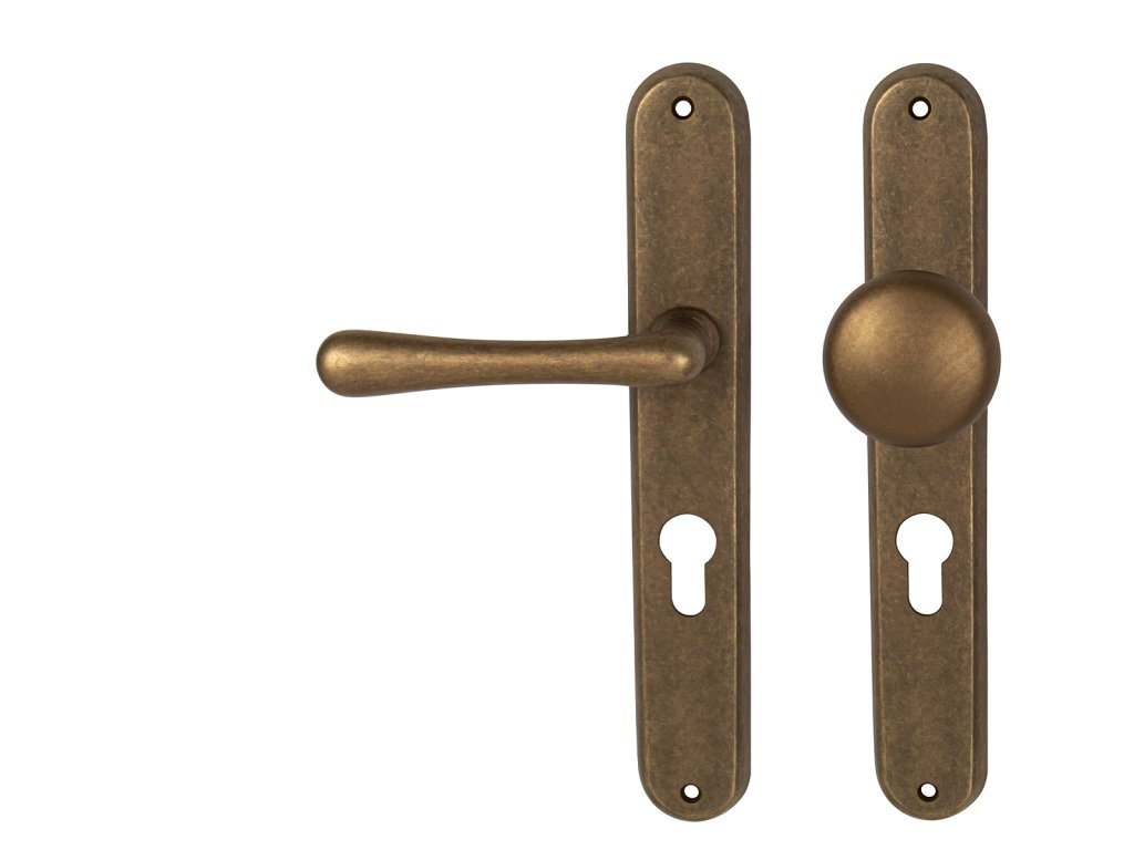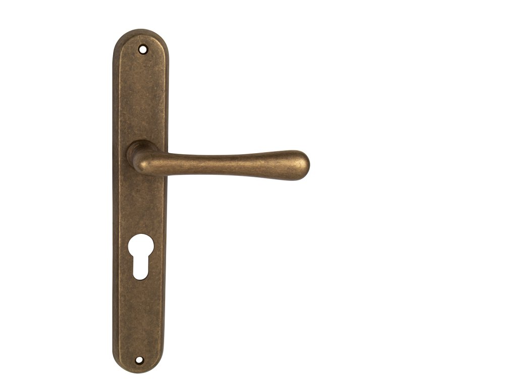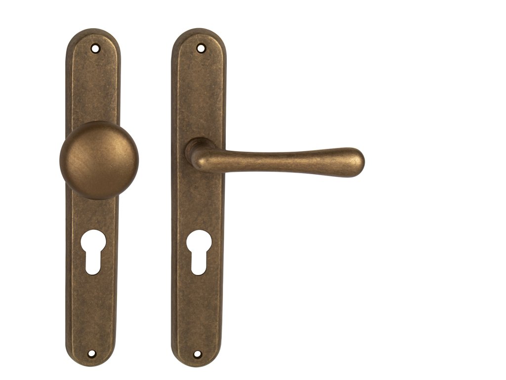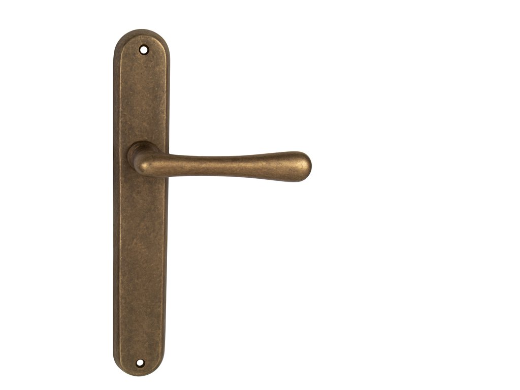 Štítová kľučka na interiérové dvere s oválnym štítom je vyrobená z materiálov vysokej kvality - mosadz a je povrchovo upravená. Oválny štít má rozmery 37 mm x 240 mm a kľučka obsahuje vratný mechanizmus.