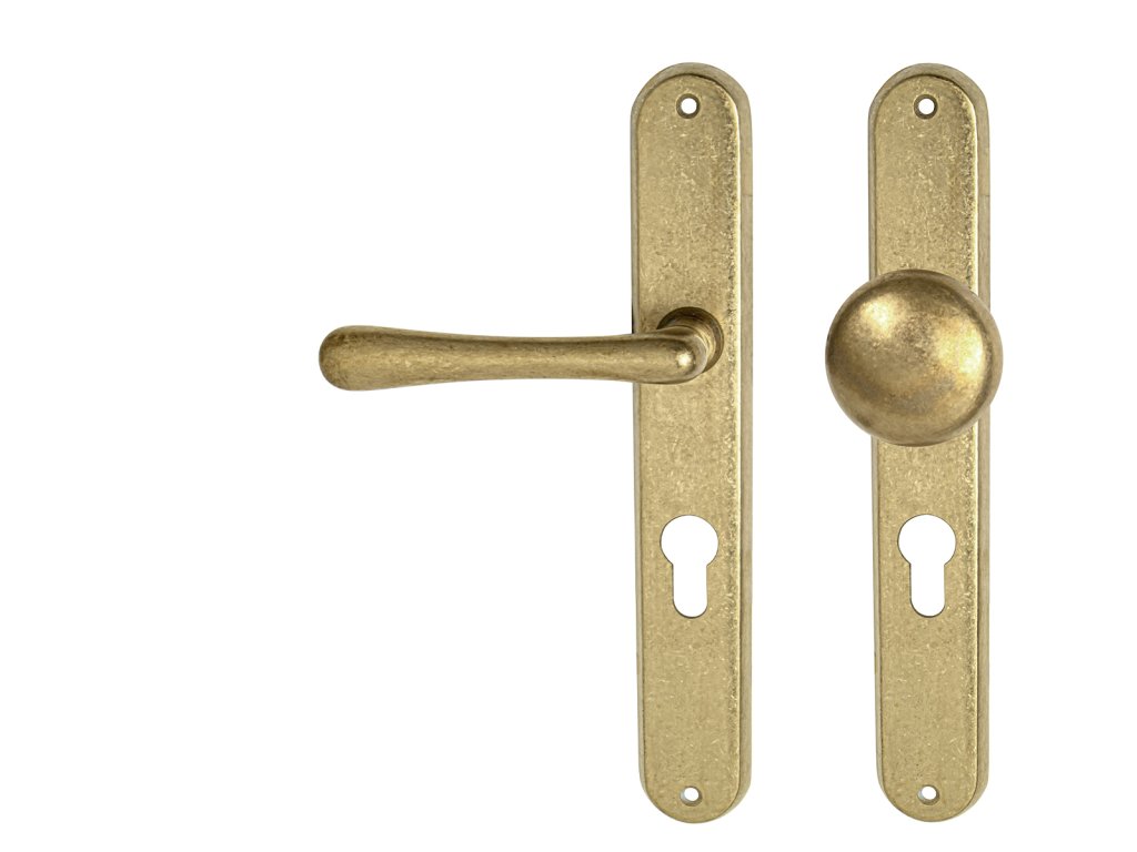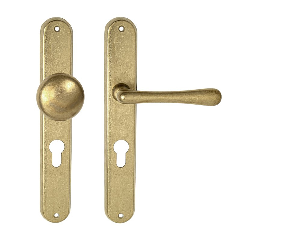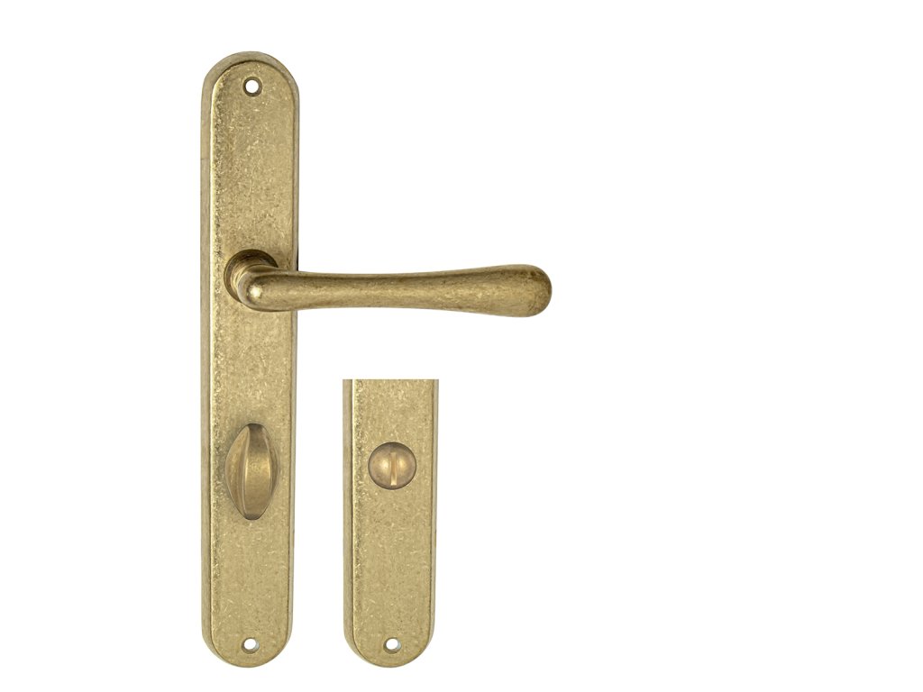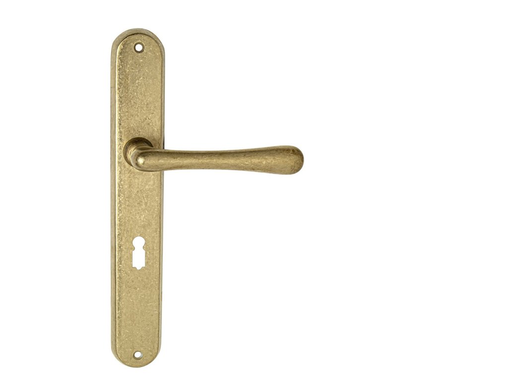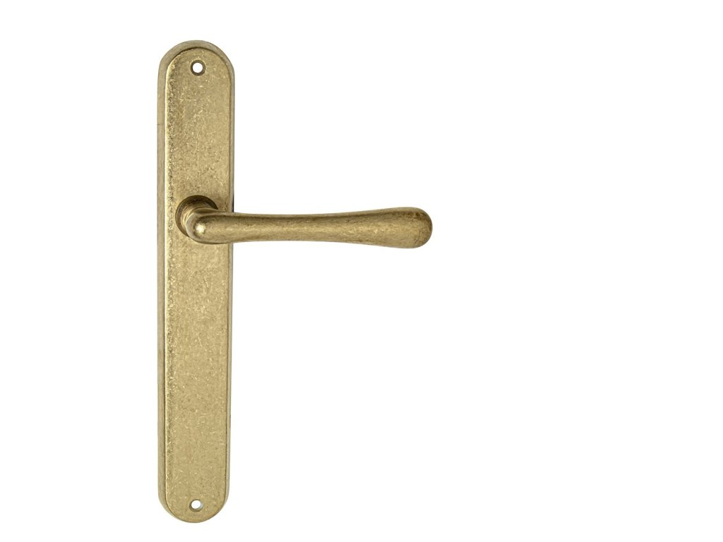 Štítová kľučka na interiérové dvere s oválnym štítom je vyrobená z materiálov vysokej kvality - mosadz a je povrchovo upravená. Oválny štít má rozmery 37 mm x 240 mm a kľučka obsahuje vratný mechanizmus.