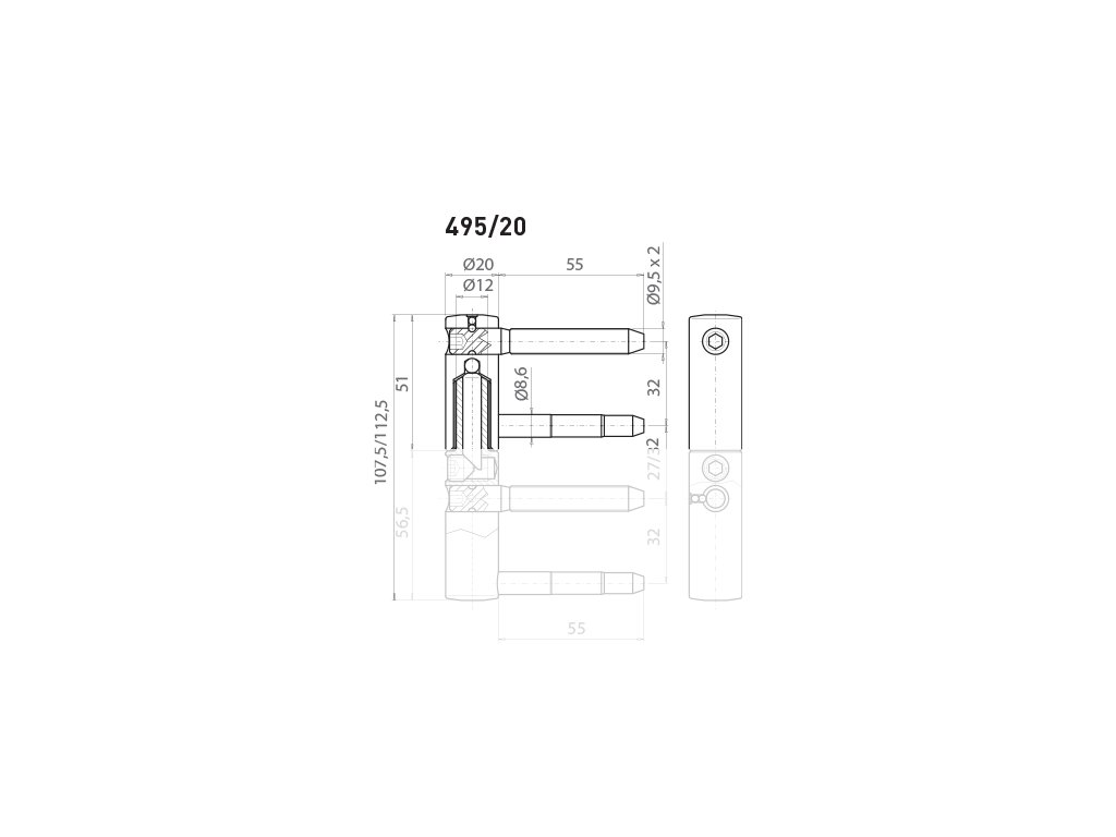 Pánt 3D o priemere 14 / 16 / 20 mm mm na falcové drevené dvere do drevených a obložkových zárubní. Dolná - rámová časť s 2 kolíkmi, nastaviteľná. Horná - krídlová časť s 2 kolíkmi, nastaviteľná, s nylónovou objímkou.Dodatočné parametre