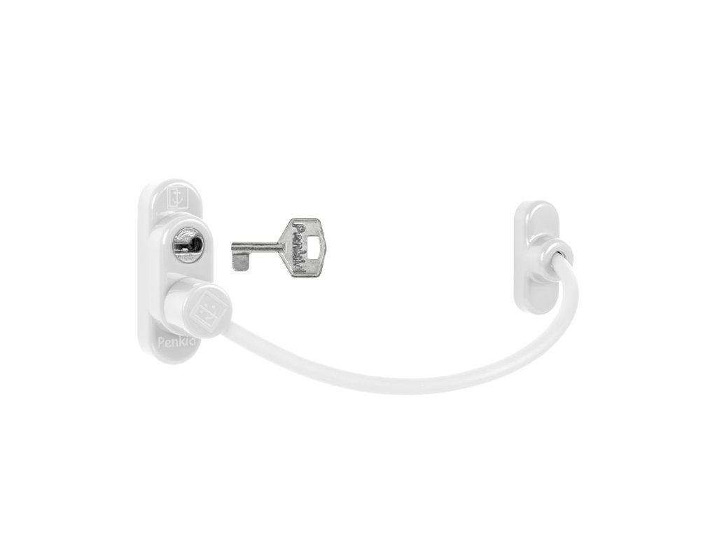 Lankový zámok na okno s uzamykaním umožňuje bezpečné vetranie a zabraňuje nehodám spôsobeným pádom z okien.
