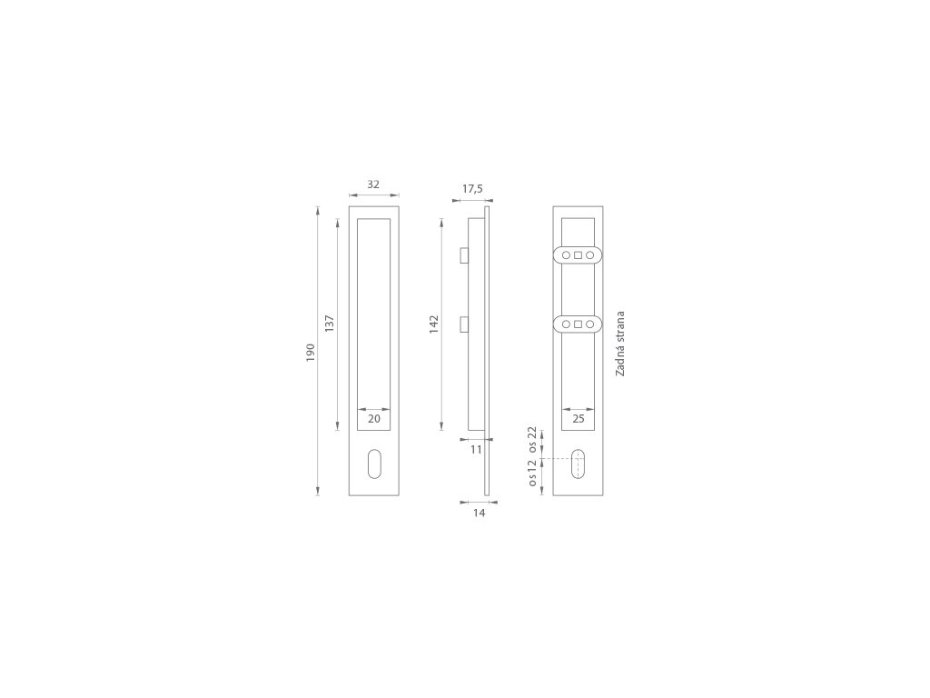 Hranatá mušľa s otvorom pre interiérový kľúč (BB) je vyrobená z materiálov vysokej kvality – zamak a je povrchovo upravená. Mušľa má výšku 190 mm, šírku 32 mm, zádlab 11 mm a celkovú hrúbku 17,5 mm. Upevnenie skrutkou - Súčasťou balenia je sada skrutiek na preskrutkovanie cez dvere. Cena je uvedená za pár.