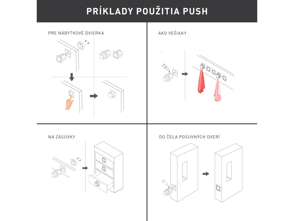 Ovládanie pomocou push systému je veľmi efektné a užívateľsky príjemné. Vďaka jednoduchému vzhľadu a čistým líniám sa hodí do každého interiéru.