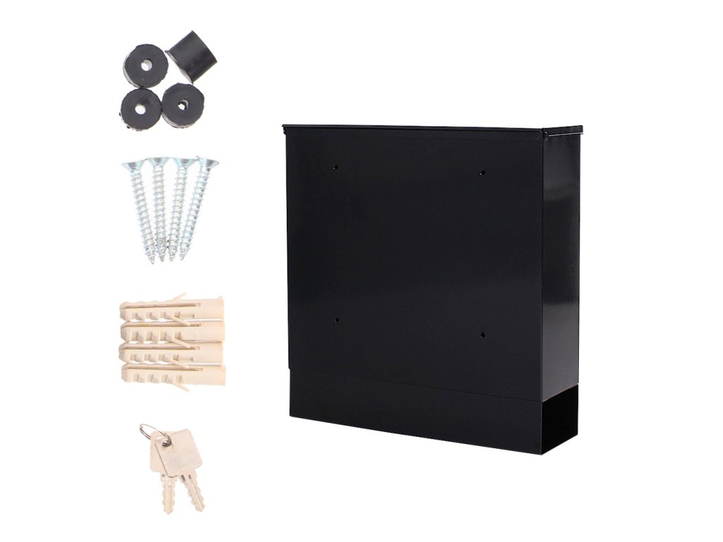 Moderná poštová schránka je vyrobená z pozinkovaného plechu a je povrchovo ošetrená. Schránka má rozmery v/š/h : 38cm / 37 cm / 12 cm a rozmery vhodu sú 30 cm x 3 cm. Na hornej strane schránky je otvor pre vhod pošty a na prednej strane schránky je otvor pre výber pošty. Súčasťou balenia sú 2 kľúče.