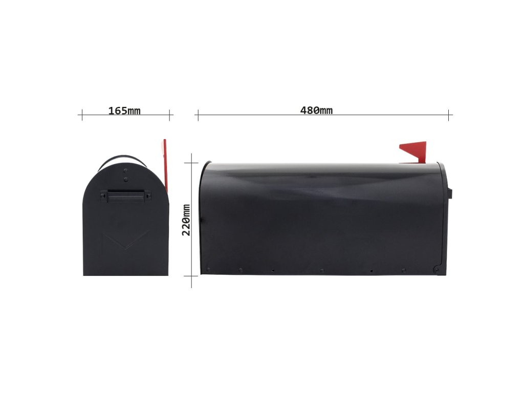 Americká poštová schránka je vyrobená z ocele a je povrchovo upravená. Schránka má rozmery v/š/h : 22 cm / 16,5 cm / 48 cm a rozmery vhodu sú 22 cm x 16,5 cm. Na prednej strane schránky je otvor pre vhod a výber pošty.