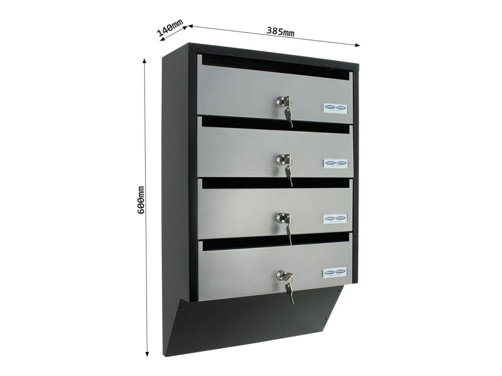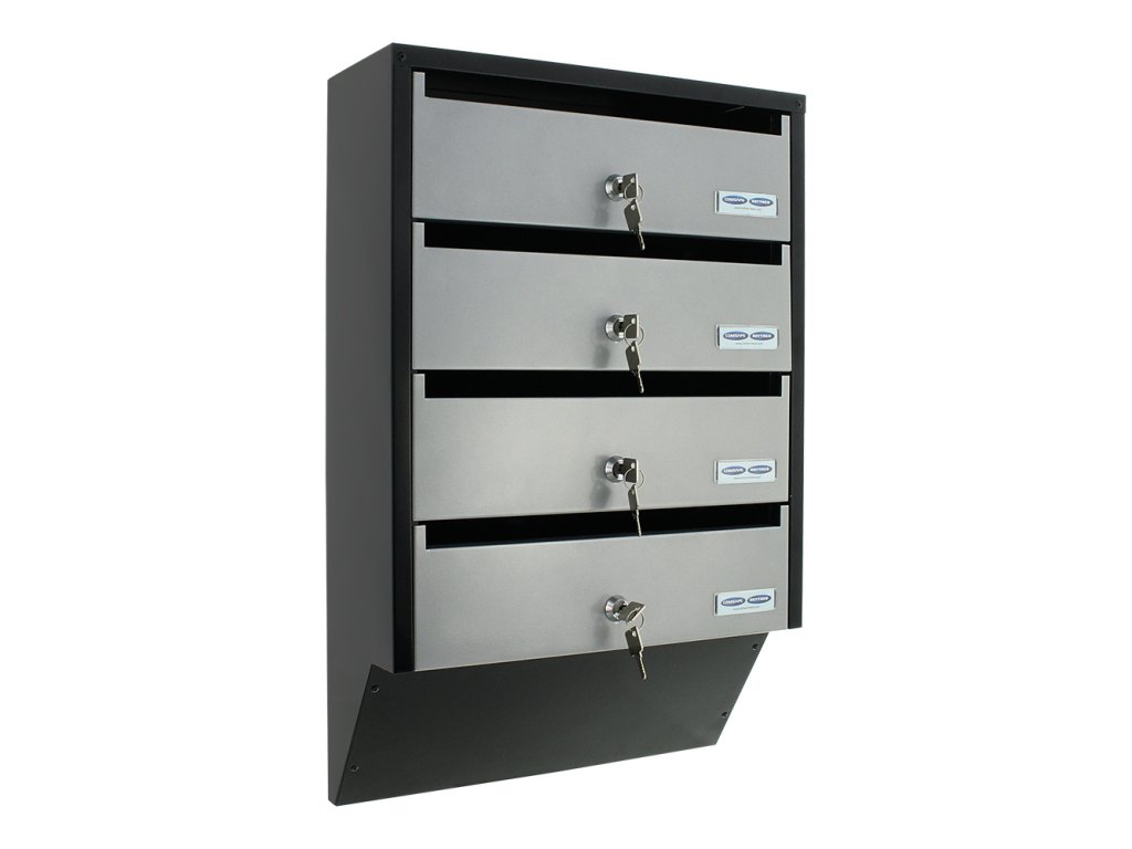 RR - POŠTOVÁ SCHRÁNKA - ZOSTAVA 4 SCHRÁNOK - DEPOT 4 - T06209 Strieborno-čierna