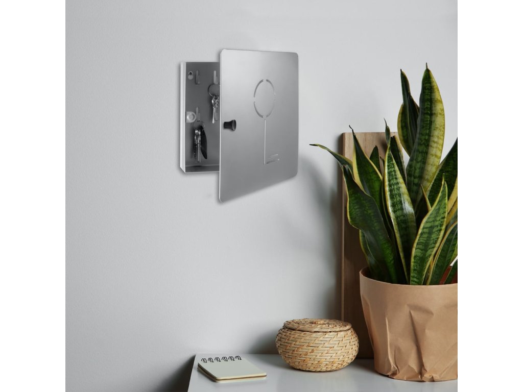 Skrinka na kľúče je vyrobená z kvalitnej ocele a je povrchovo upravená. Skrinka má vonkajšie rozmery v/š/h: 22 cm / 22 cm / 5 cm a vnútorné rozmery v/š/h: 18,5 cm / 18,5 cm / 4,5 cm. Skrinka má 10 hákov, teda je určená pre 10 kľúčov a má predprípravu na upevnenie. Upevňovací materiál je súčasťou balenia.