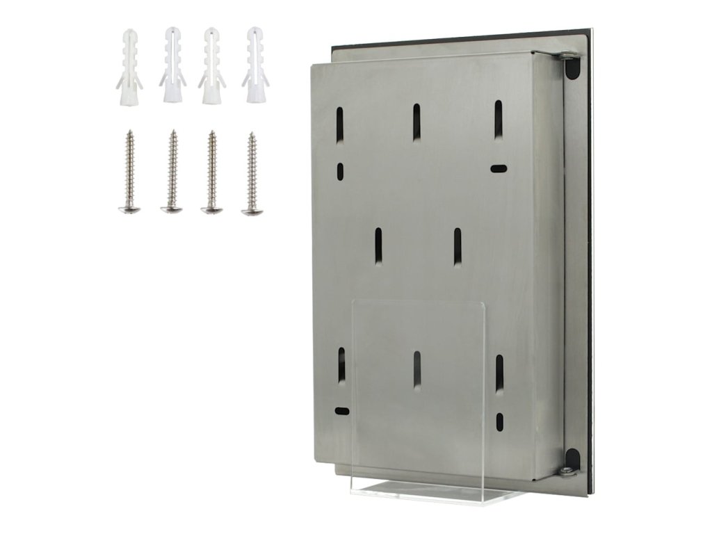 Skrinka na kľúče KEY GLASS upúta moderným dizajnom so sklenenými prednými dverami a zatváraním na magnet. Vo vnútri skrinky je priestor pre 8 kľúčov. Súčasťou balenia je aj držiak s magnetom a perom. Na sklenené magnetické dvere môžete napísať odkaz perom alebo môžete pripevniť odkaz magnetom. Balenie obsahuje potrebný kotviaci materiál pre pripevnenie na stenu. Na zadnej strane sa nachádzajú otvory na ukotvenie.
