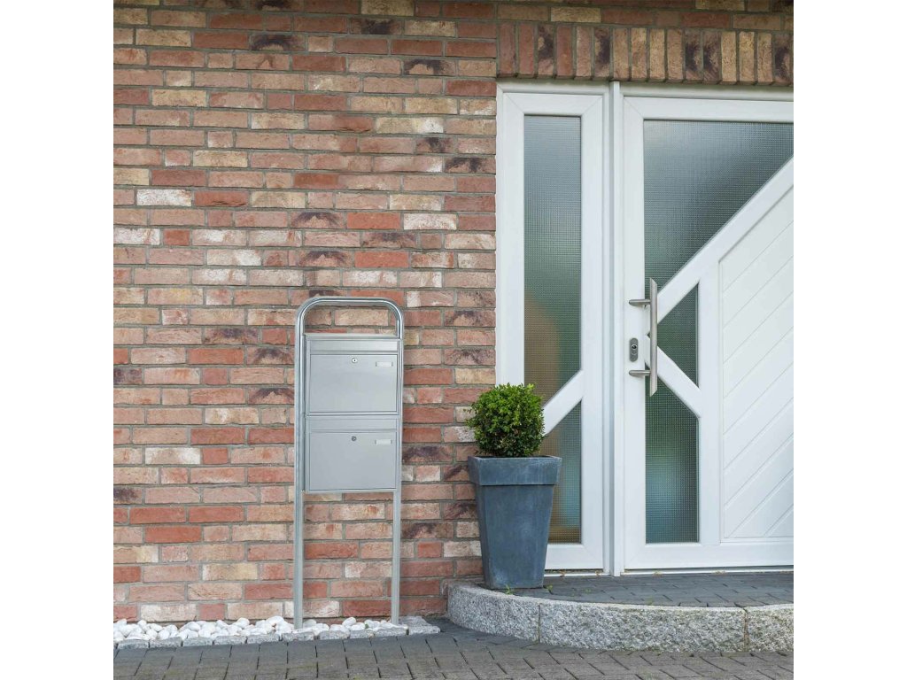Stojanová poštová schránka - 2 kusy - je vyrobená z nerezu a je povrchovo upravená. Schránka má celkové rozmery v/š/h : 135,5 cm / 44 cm / 12,5 cm. Na prednej strane schránky je otvor pre vhod a výber pošty.