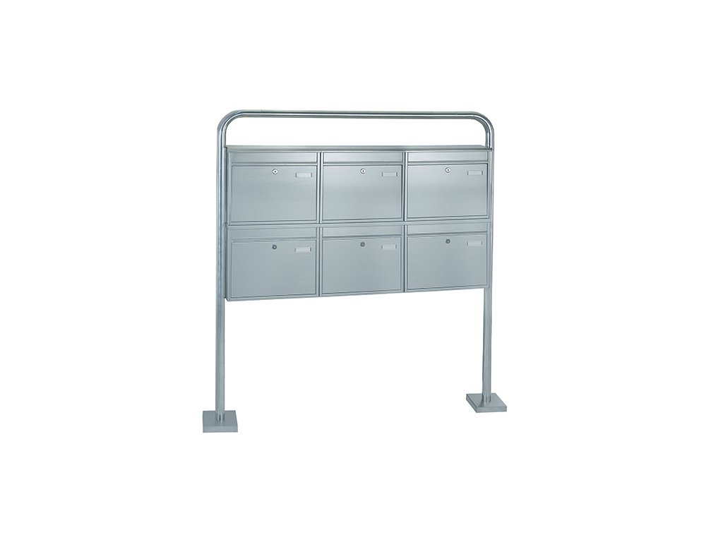 Stojanová poštová schránka - 6 kusov - je vyrobená z nerezu a je povrchovo upravená. Schránka má celkové rozmery v/š/h : 135,5 cm / 116 cm / 12,5 cm. Na prednej strane schránky je otvor pre vhod a výber pošty.