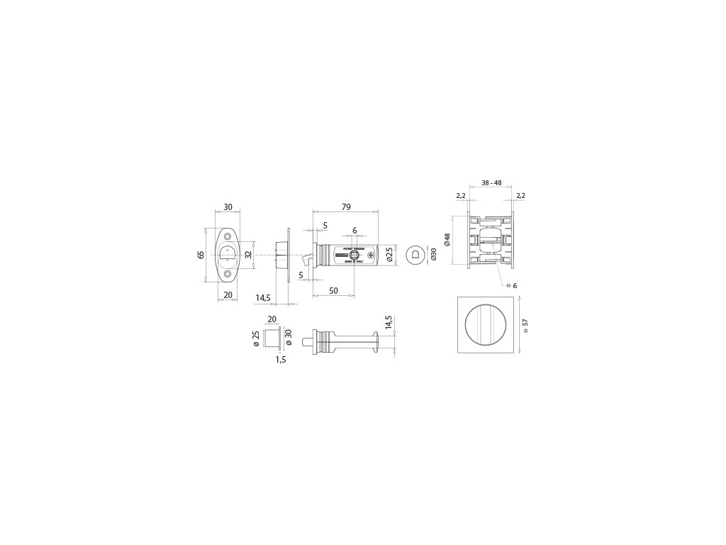 Set obsahuje: zámok, mušle - 2 ks, madielko do čela posuvných dverí - 1 ks, protiplech do zárubne