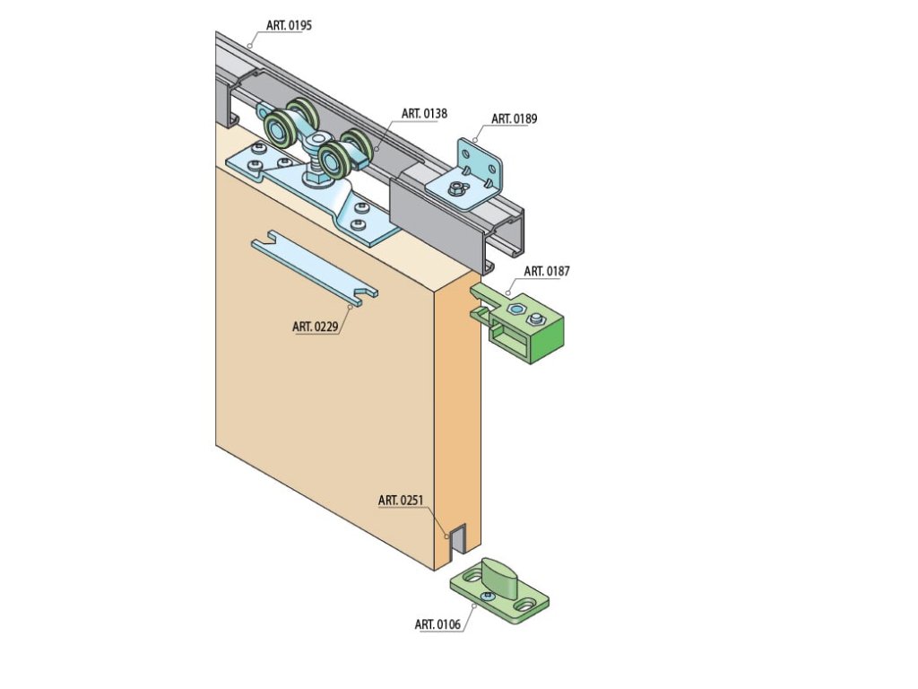 SC – posuvný systém SERIES 100 SILENT pre jednokrídlové dvere 1D 2000/80 obsahuje: