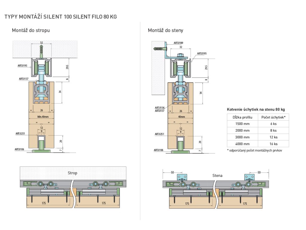 SC – posuvný systém SERIES 100 SILENT FILO pre jednokrídlové dvere 1D 2000/80 obsahuje: