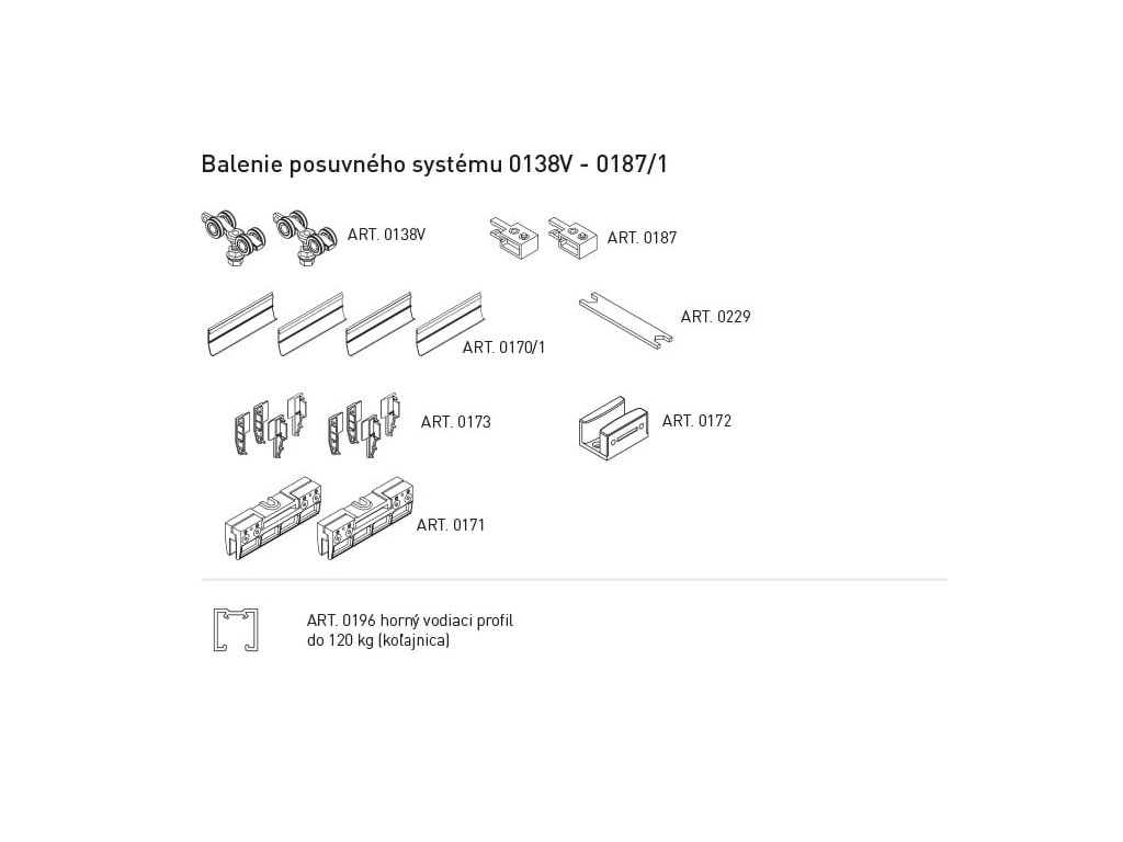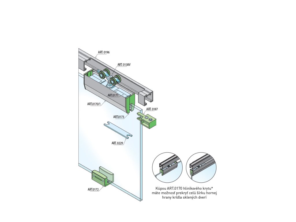 SC – posuvný systém 100 SILENT GLASS 120 KG s krytom na profil obsahuje: