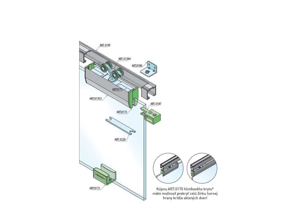 POSUVNÝ SYSTÉM 100 SILENT GLASS 80 KG s krytom na profil obsahuje:
