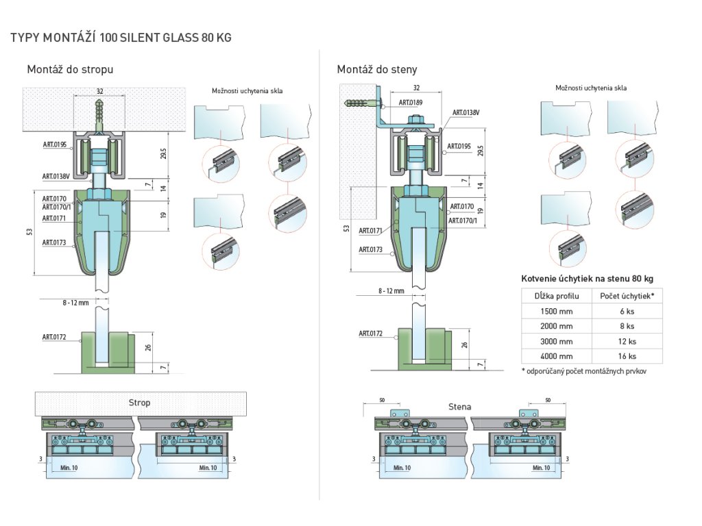 SC - POSUVNÝ SYSTÉM 100 SILENT GLASS 80 KG STM - strieborná matná (AF)