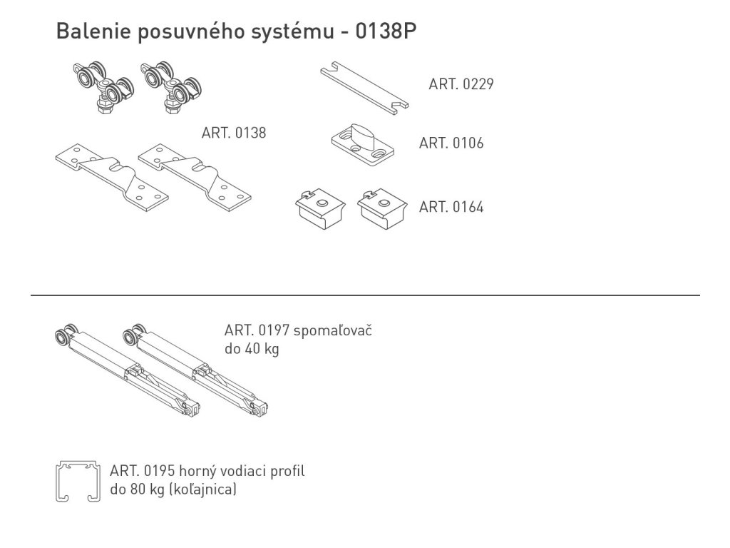 SC – posuvný systém SERIES 100 SILENT S pre jednokrídlové dvere 1D 2000/40 SP obsahuje:
