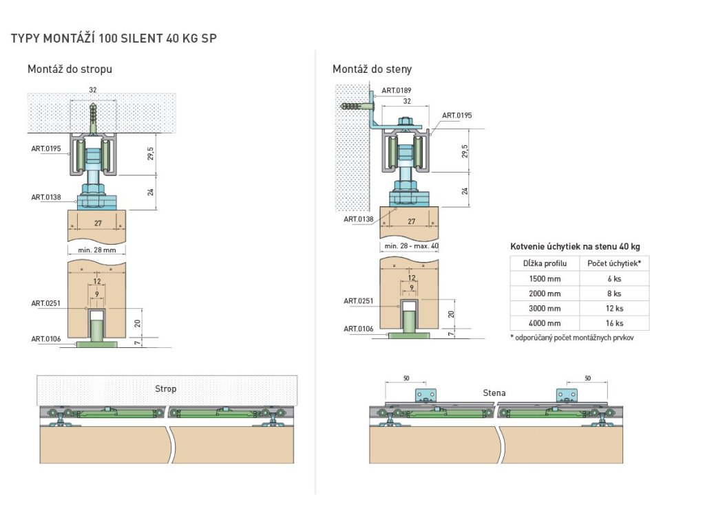 SC – posuvný systém SERIES 100 SILENT S pre jednokrídlové dvere 1D 1500/40 SP obsahuje:
