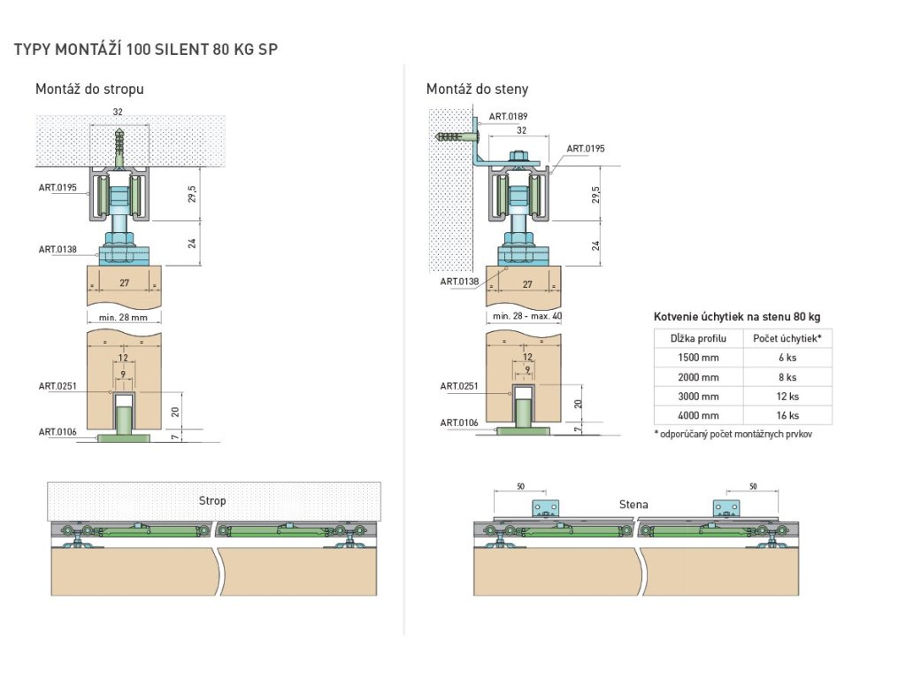 SC - POSUVNÝ SYSTÉM 100 SILENT S 80 KG SP s krytom na profil obsahuje: