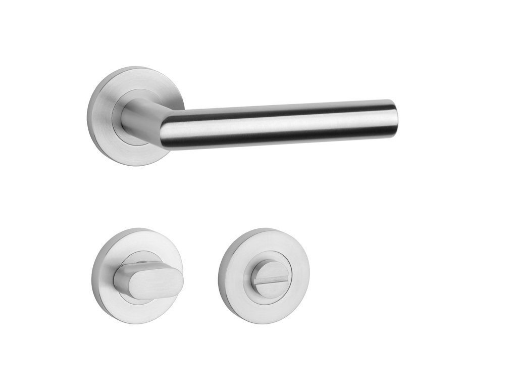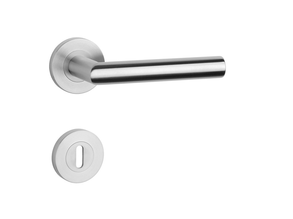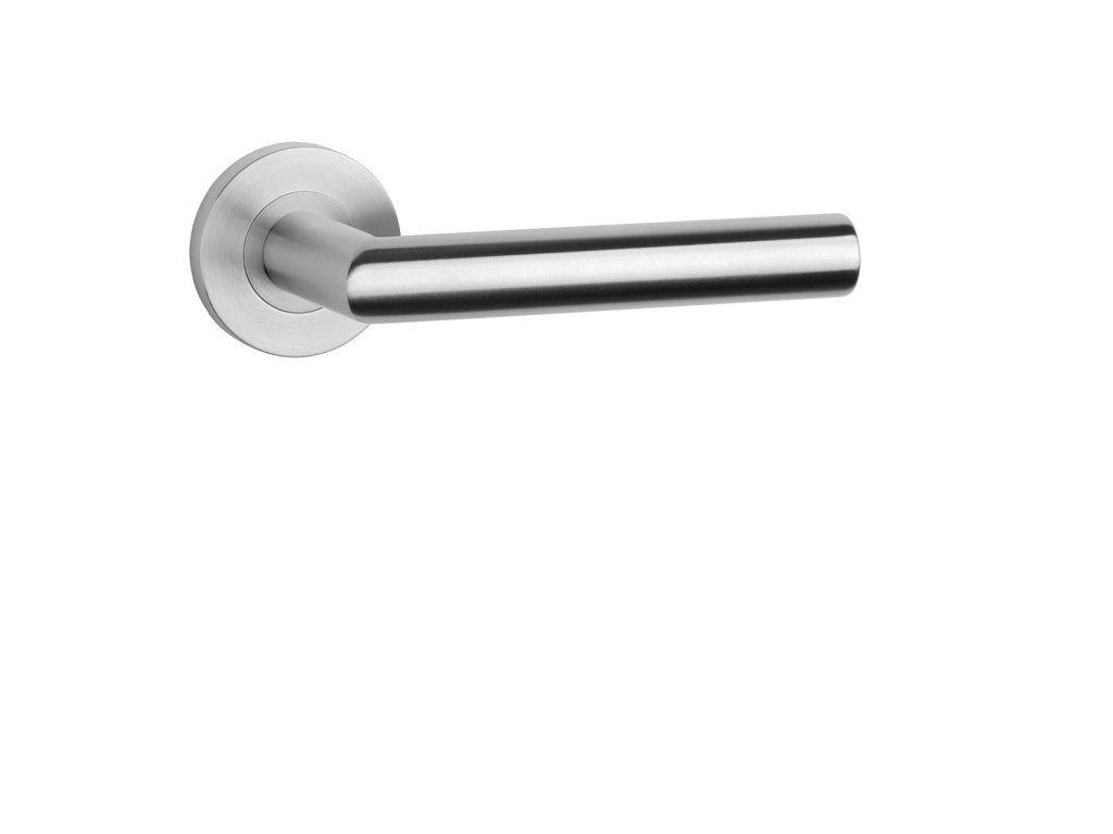 Rozetová kľučka OVAL 1740 PRO na interiérové dvere s okrúhlou rozetou je vyrobená z kvalitnej nehrdzavejúcej ocele s povrchovou úpravou, ktorá zaručuje dlhú životnosť a moderný vzhľad.