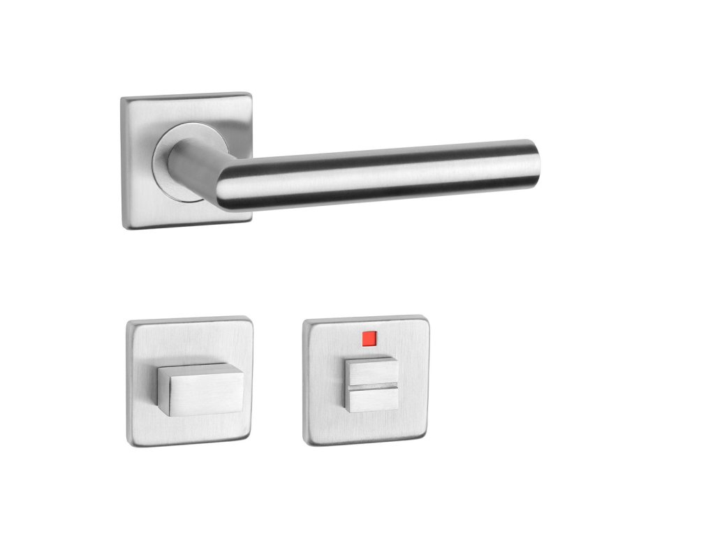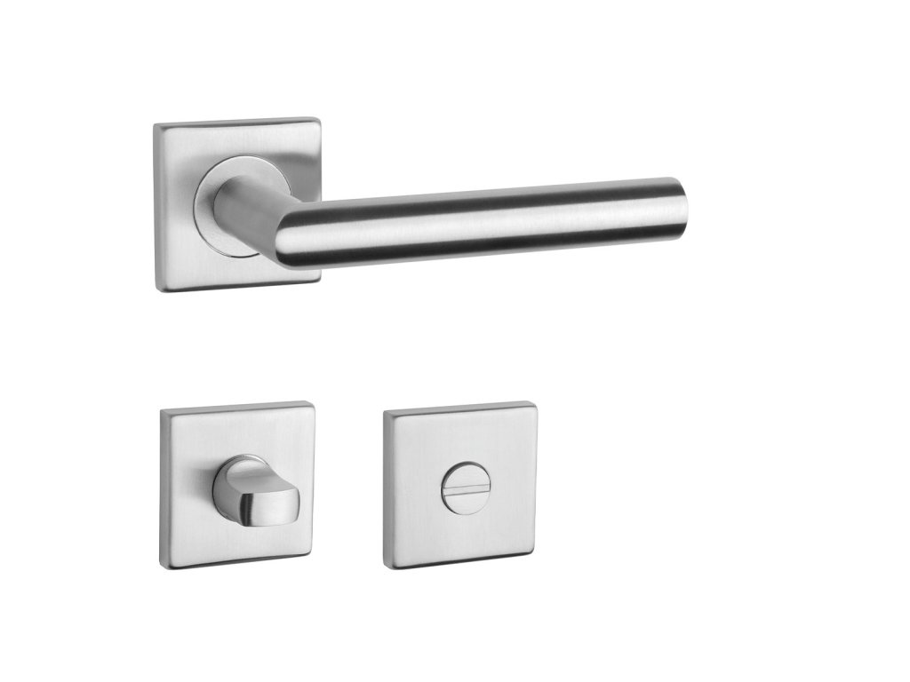 Rozetová kľučka KVADRAT 1701 na interiérové dvere s hranatou rozetou je vyrobená z kvalitnej nehrdzavejúcej ocele s povrchovou úpravou, ktorá zaručuje dlhú životnosť a moderný vzhľad.