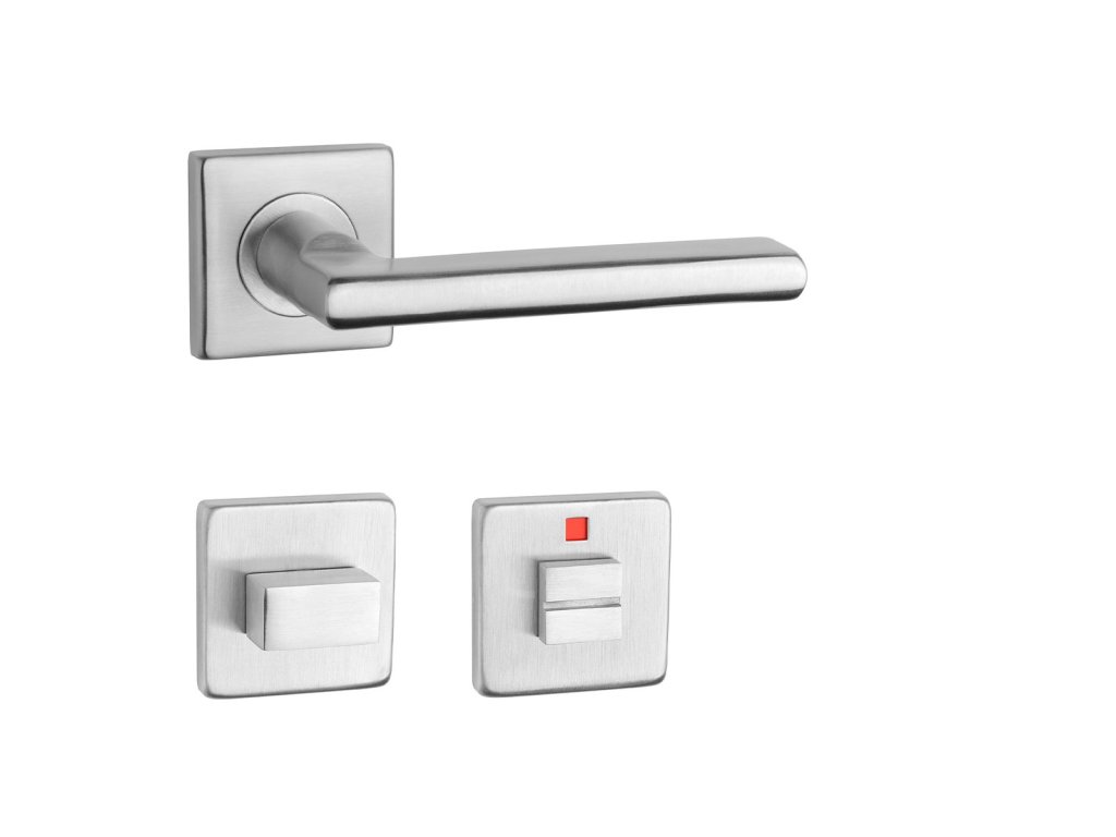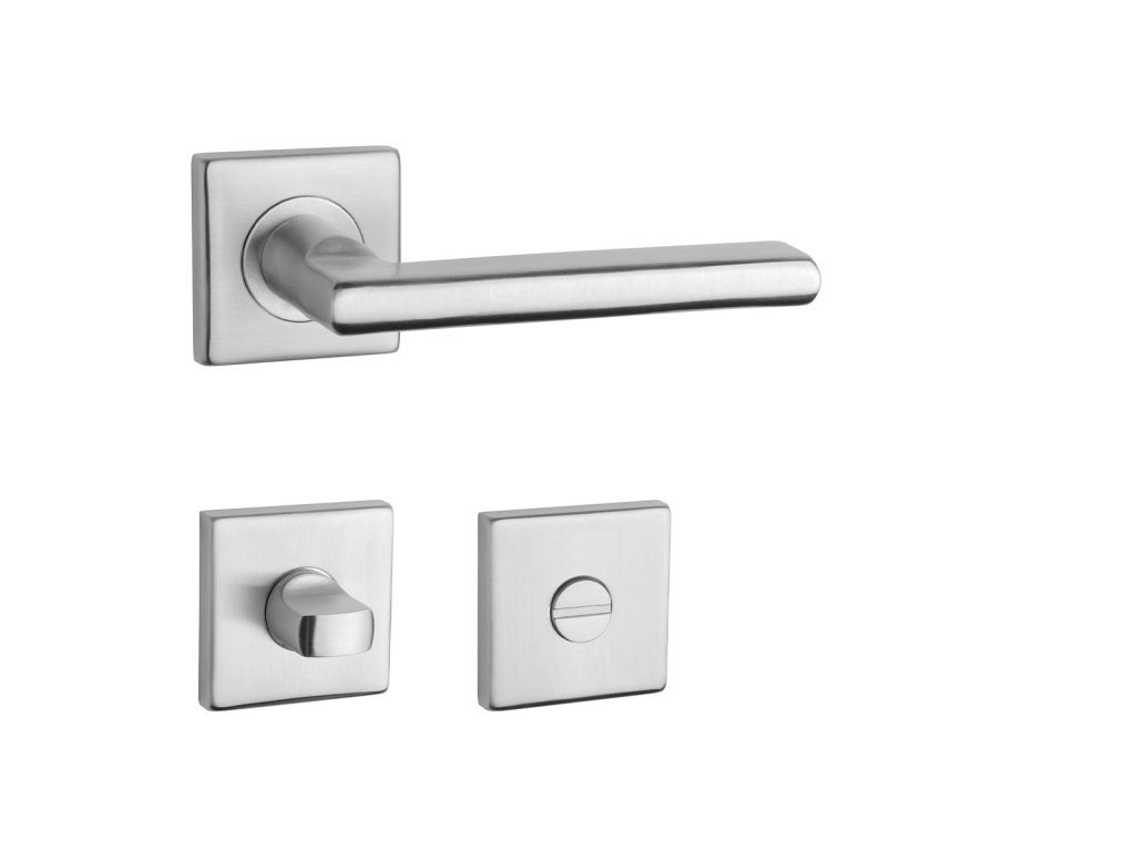 Rozetová kľučka KVADRAT 1702 na interiérové dvere s hranatou rozetou je vyrobená z kvalitnej nehrdzavejúcej ocele s povrchovou úpravou, ktorá zaručuje dlhú životnosť a moderný vzhľad.