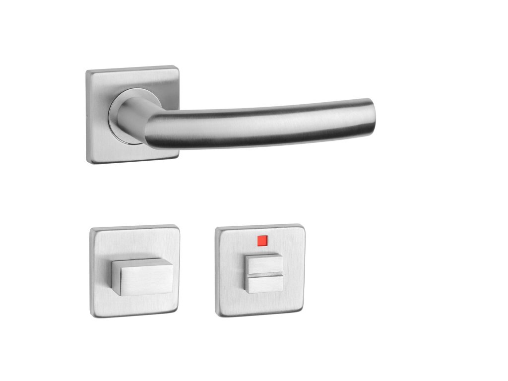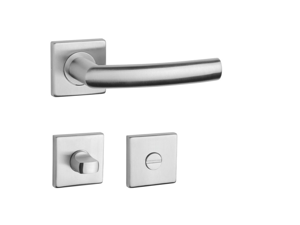 Rozetová kľučka KVADRAT 1706 na interiérové dvere s hranatou rozetou je vyrobená z kvalitnej nehrdzavejúcej ocele s povrchovou úpravou, ktorá zaručuje dlhú životnosť a moderný vzhľad.