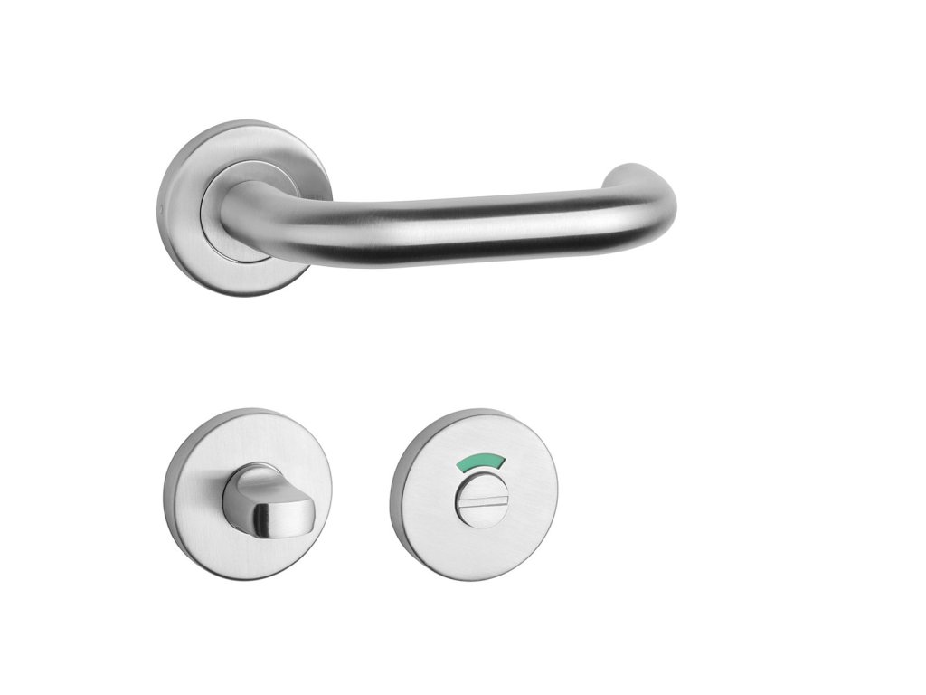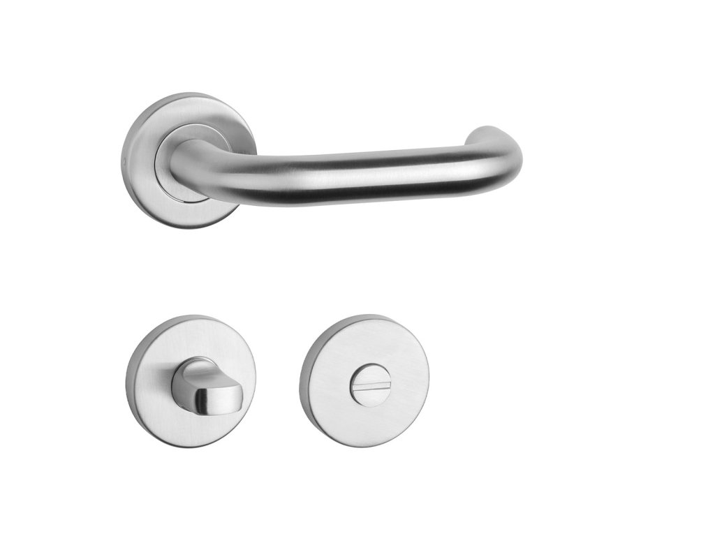 Rozetová kľučka OVAL 1704 na interiérové dvere s okrúhlou rozetou je vyrobená z kvalitnej nehrdzavejúcej ocele s povrchovou úpravou, ktorá zaručuje dlhú životnosť a moderný vzhľad.
