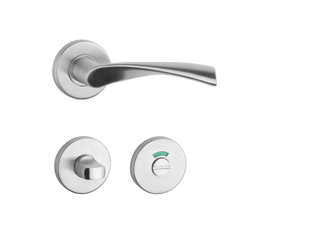 Rozetová kľučka OVAL 1708 na interiérové dvere s okrúhlou rozetou je vyrobená z kvalitnej nehrdzavejúcej ocele s povrchovou úpravou, ktorá zaručuje dlhú životnosť a moderný vzhľad.