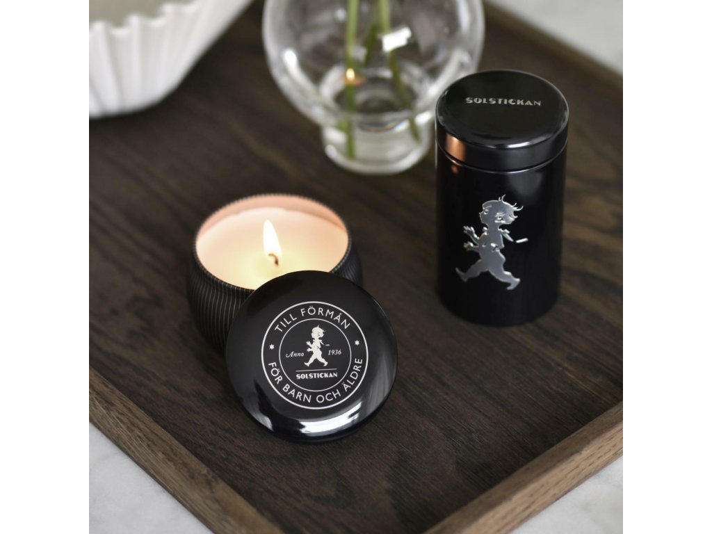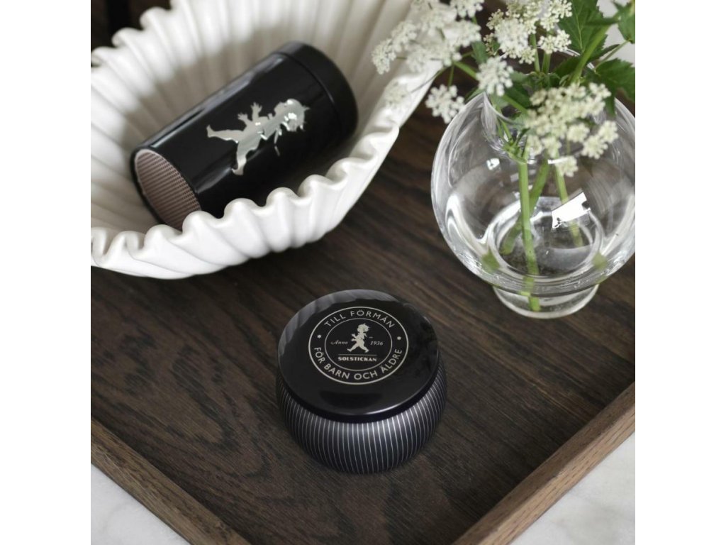 Okrúhla kovová dóza na zápalky sa jednoducho otvára a obsahuje 100 kusov extra dlhých kvalitných zápaliek vyrobených vo Švédsku. V spodnej časti je decentne umiestnené "škrtátko". Minimalistický severský dizajn je doplnený zlatým emblémom s klasickým švédskym motívom chlapca od známeho umelca Einera Nermana.
