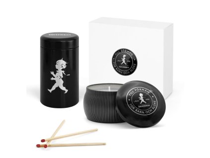 SN - DARČEKOVÝ BOX - Sviečka a zápalky - Céder CIL/STL - čierna lesklá/strieborný lesklý emblém