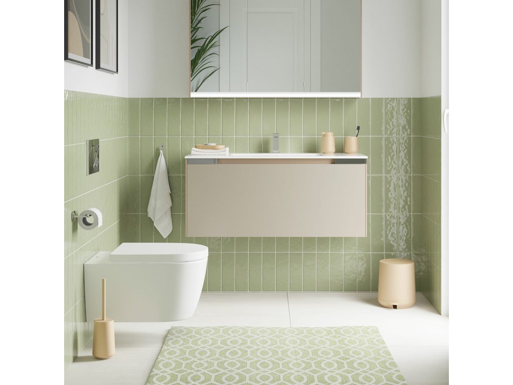 Odpadkový kôš je vyrobený z odolného plastu s matným béžovým povrchom. Je praktickým a štýlovým doplnkom do každej kúpeľne.