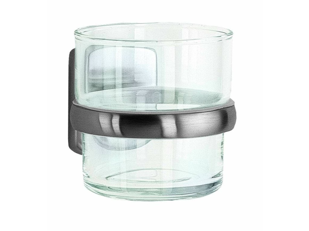 Pohár na zubné kefky s držiakom je vyrobený z materiálov vysokej kvality - mosadz a je povrchovo upravená, priehľadné sklo, séria Cabin.