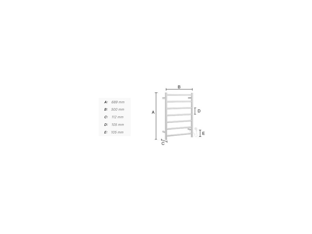 Elektrický sušiak uterákov je vyrobený z vysokokvalitnej nehrdzavejúcej ocele, známej ako nerez a je povrchovo upravený, s rozmermi: š/v/h 500 mm/689 mm/112 mm, výkon - 65W, napätie - 220 - 240 V / 50 Hz, stupeň krytia - IP44, trieda ochrany - 1, sušiak môžete pripojiť konektorom - zástrčkou (súčasť balenia) alebo pomocou pevného skrytého elektrického pripojenia (je nutné dokúpiť FK722).