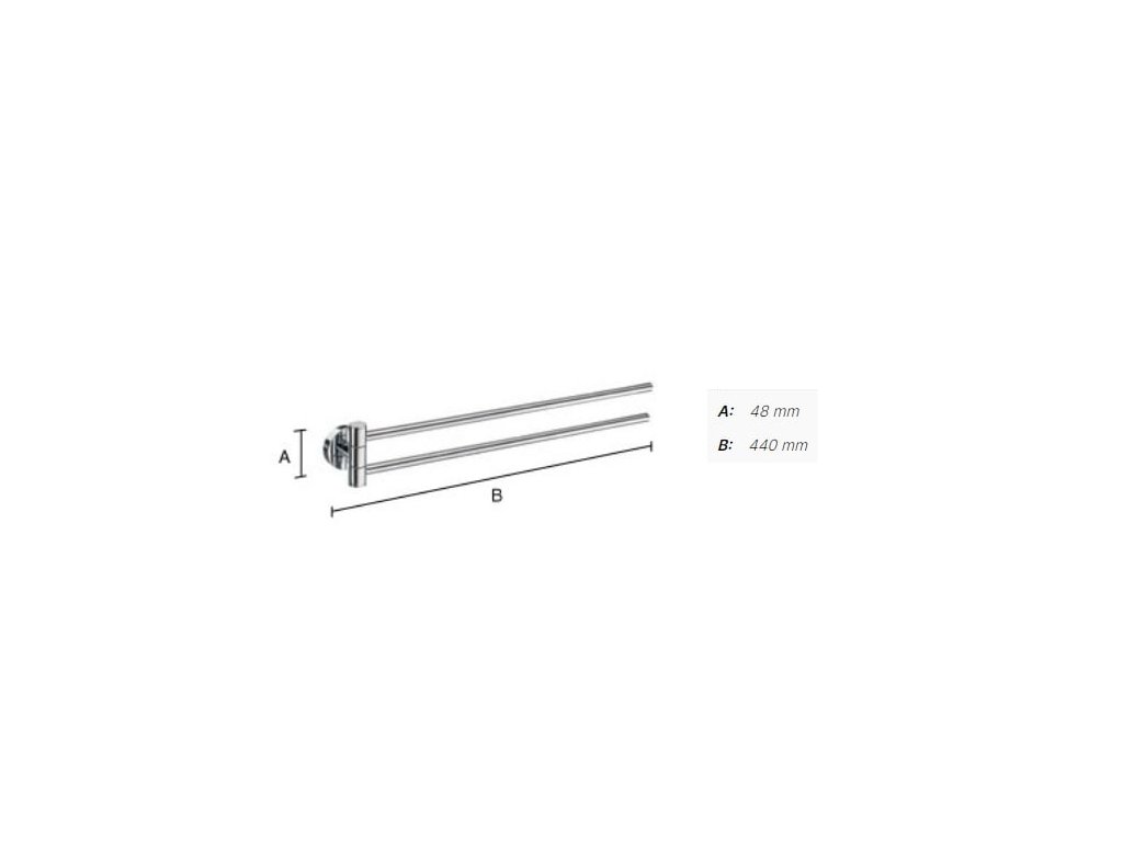 Dvojitý sklopný držiak na uterákj e vyrobený z materiálov vysokej kvality - mosadz a je povrchovo upravený, s dĺžkou 440 mm.