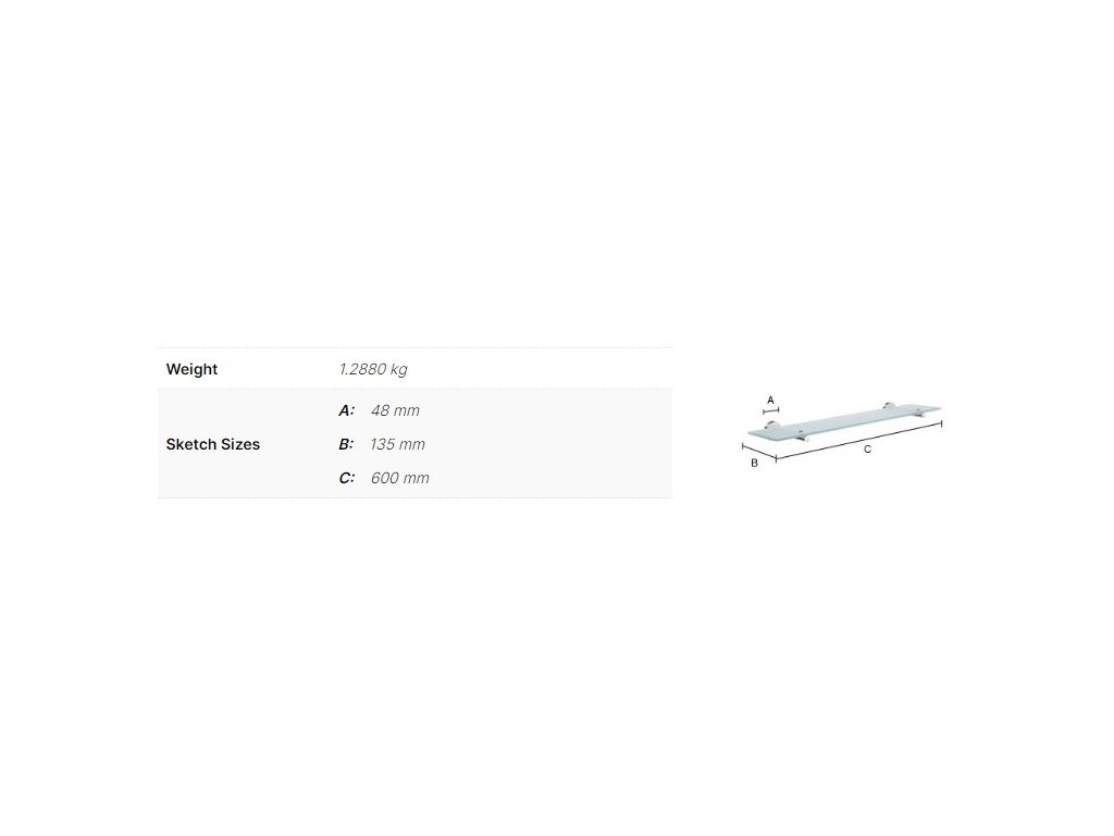 Sklenená polica s držiakmi je vyrobená z materiálov vysokej kvality - mosadz a je povrchovo upravená, s dĺžkou 600 mm, matné sklo s hrúbkou 6 mm.