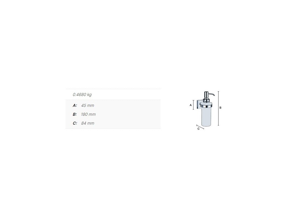 Závesný dávkovač tekutého mydla s držiakom je vyrobený z materiálov vysokej kvality - mosadz a je povrchovo upravený, s objemom 200 ml a výškou 180 mm, matné sklo.
