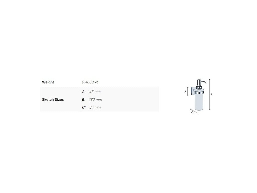 Dávkovač mydla s držiakom je vyrobený z materiálov vysokej kvality - mosadz a sklo.