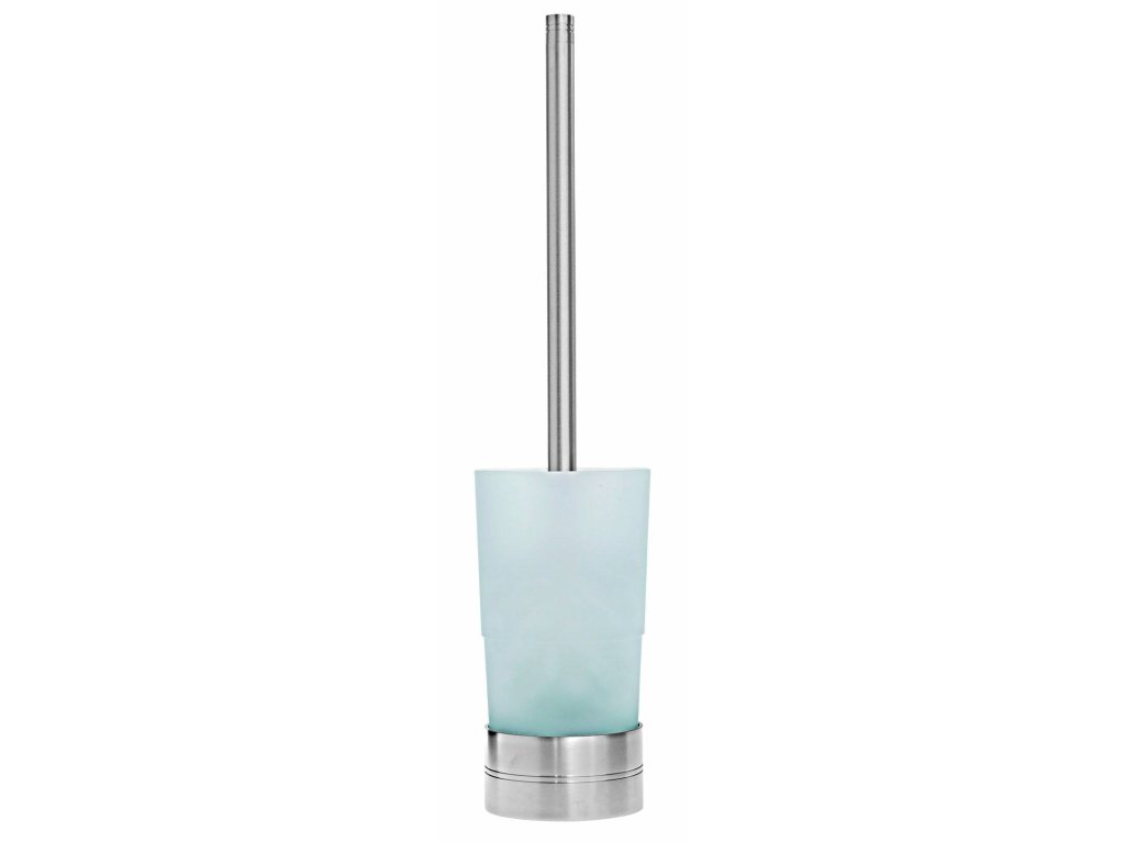 WC súprava - Toaletná kefa s nádobou z matného skla a v kovovej obruči, voľne stojaca, séria Studio.