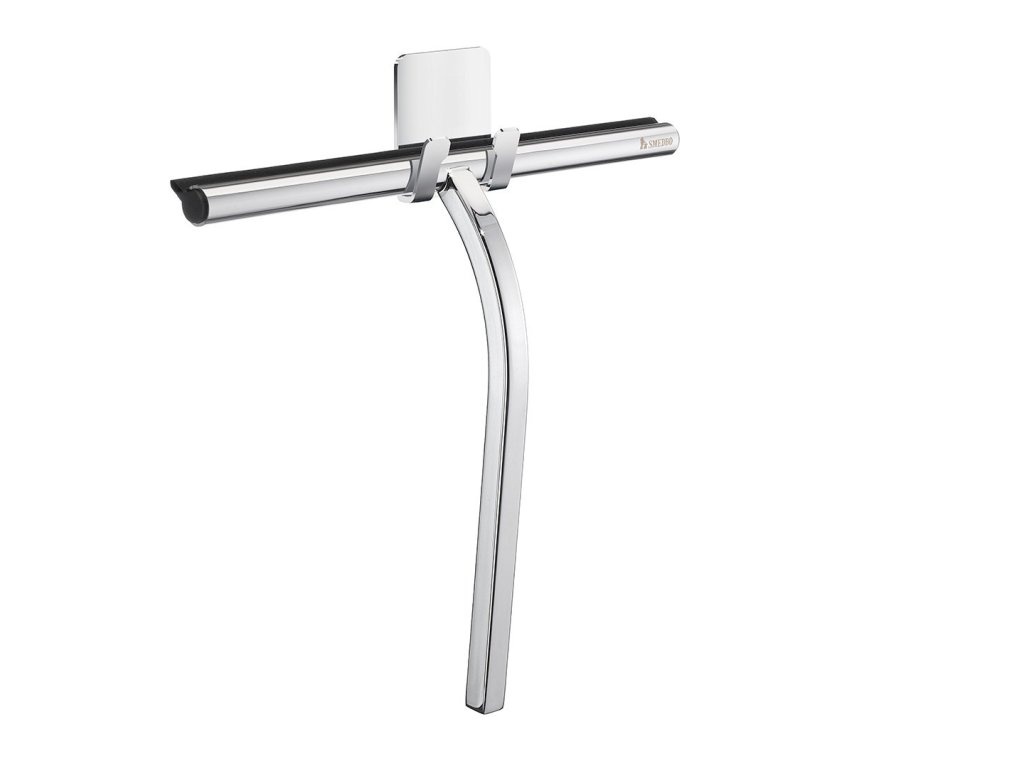 Sprchová stierka so samolepiacim vešiačikom je vyrobená z kvalitného materiálu z nehrdzavejúcej ocele s chrómovou povrchovou úpravou.